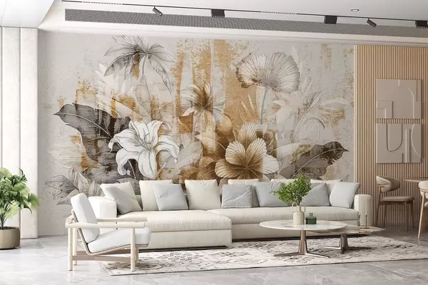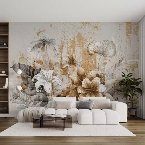 Fototapet Design vintage cu flori și plante exotice Nr. w08767