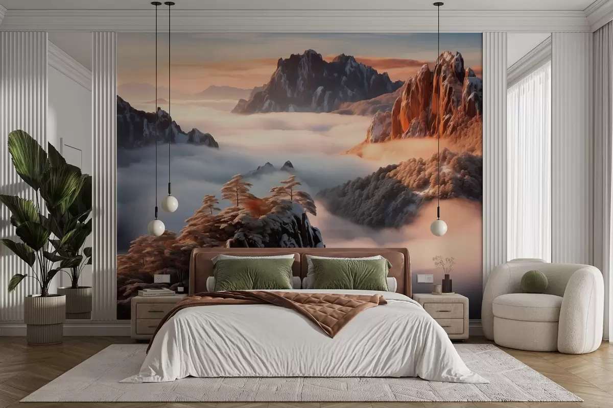 Fototapet Fermecător peisaj montan cu ceață și copaci Nr. w08807