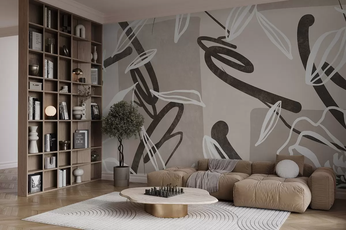 Fototapet Design abstract texturat modern și minimalist cu elemente florale într-o paletă de culori bej neutru Nr. w08888