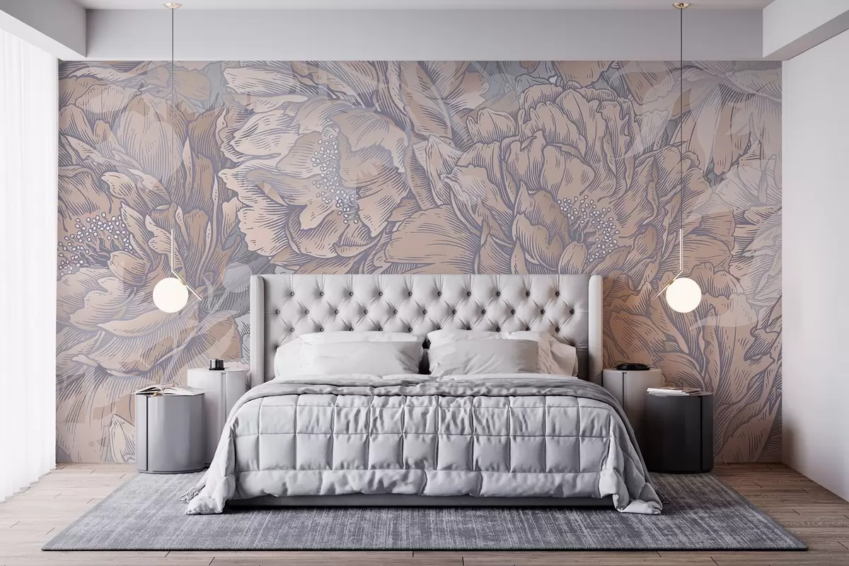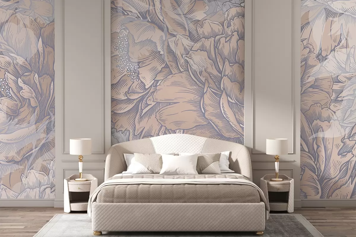 Fototapet Flori de bujor cu petale și stamine detaliate, culori pastelate moi, stil de ilustrare botanică de epocă Nr. w08890
