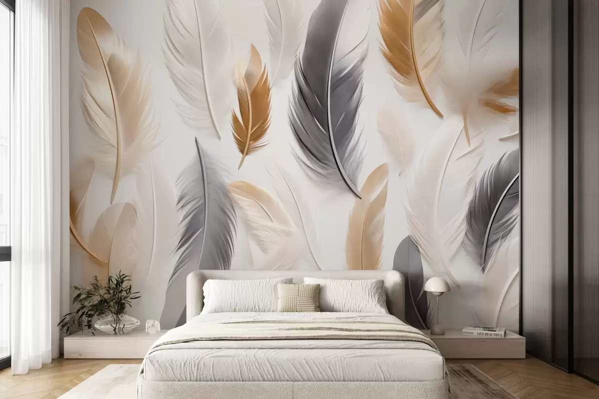 Fototapet Pene bej-cenușiu în tonuri moi, calme Nr. w08955