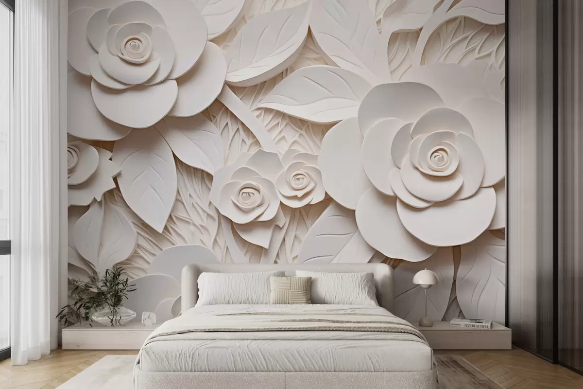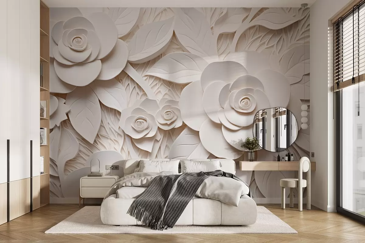Fototapet trandafiri volumetrici albi 3D Nr. w08963