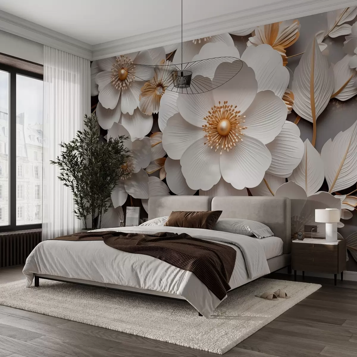 Fototapet flori 3D în stil origami în tonuri de galben-cenușiu Nr. w08993