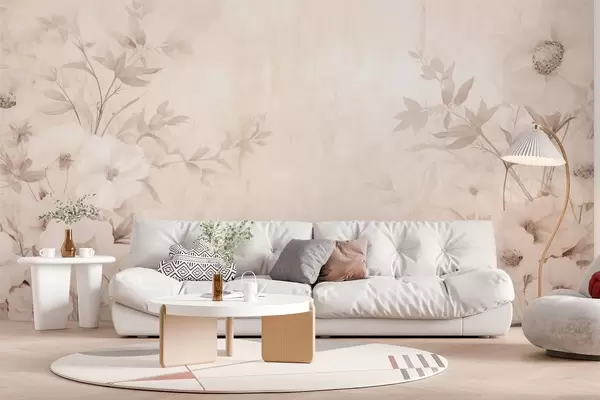 Fototapet Flori cu frunze în tonuri neutre de lumină în stil acuarelă Nr. w09040