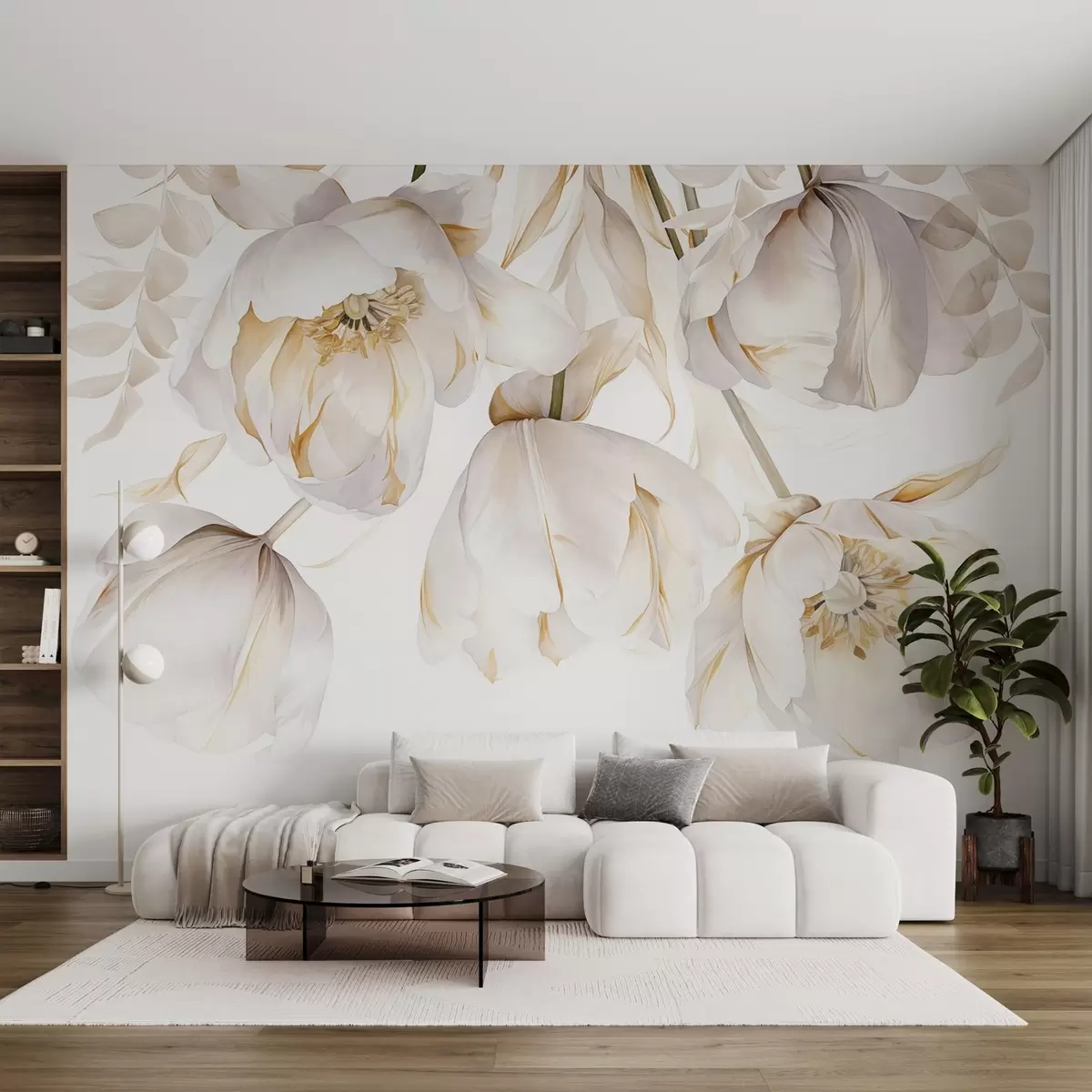 Fototapet Lalele albe cu pistil galben, petale delicate, aranjament floral elegant, compoziție delicată, pe un fundal alb Nr. w09112