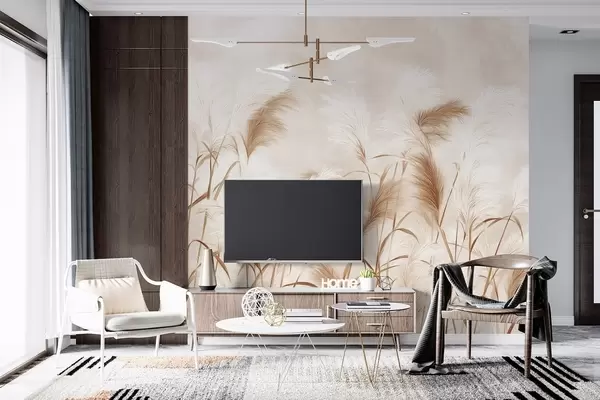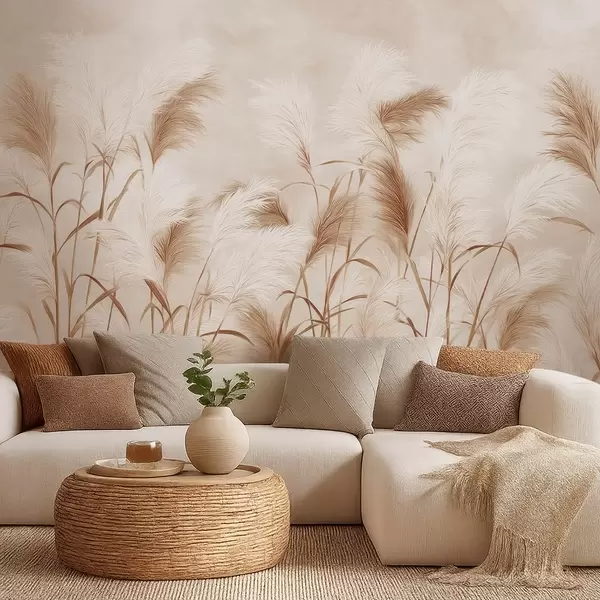 Fototapet Iarba de pampas elegantă înflorește în tonuri moi de bej și lăptos Nr. w09150v1
