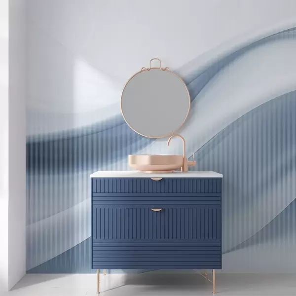 fototapet Imprimeu abstract cu linii fluide și dungi verticale subtile, creând un sentiment de mișcare și profunzime, paletă albastră w09189v1