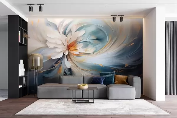 Fototapet Floare abstractă în tonuri de albastru și portocaliu Nr. w09270v1