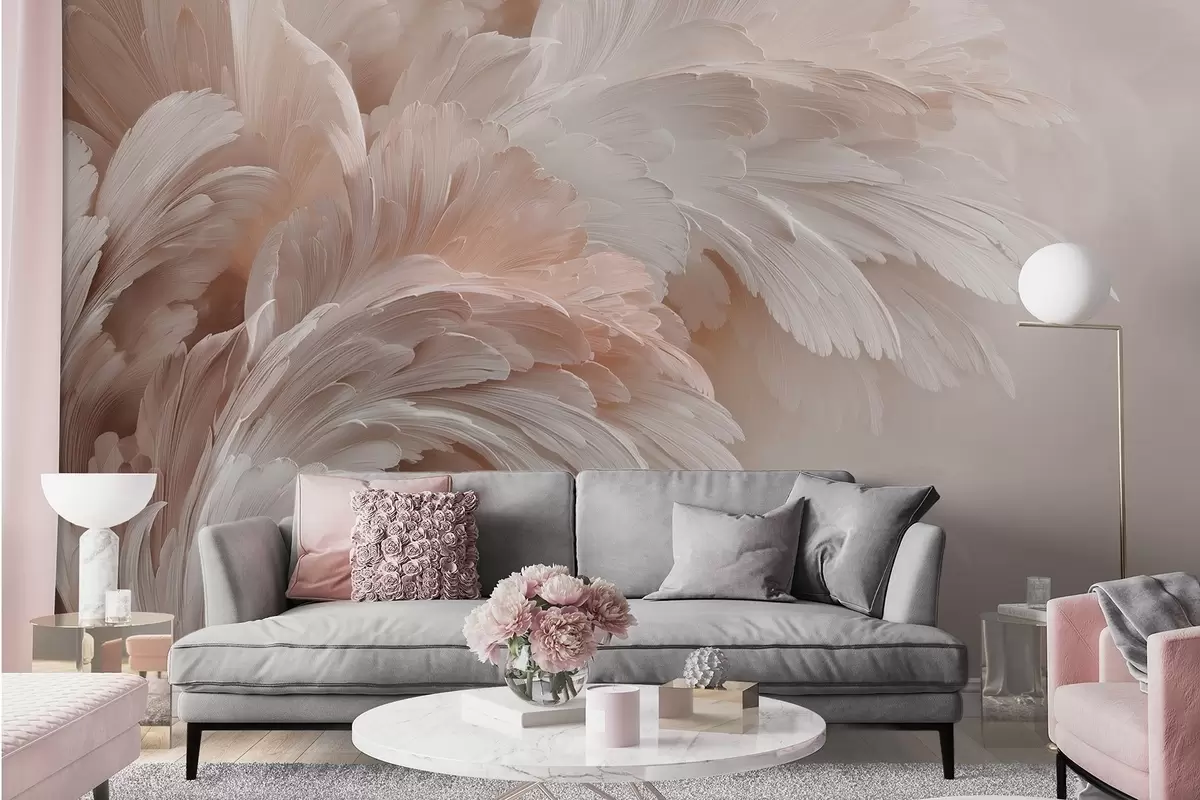 Fototapet Pene și petale aerisite în nuanțe de roz crem Nr. w09301