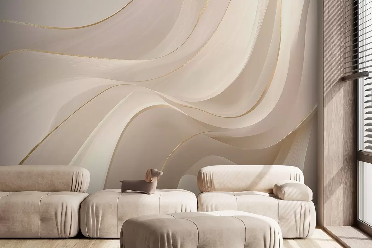 fototapet Valuri curgătoare cu accente galbene în lumină cremoasă w09303