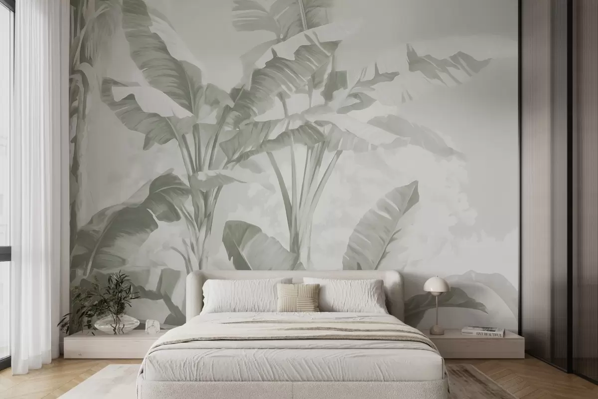 Fototapet Frunze de bananier tropical în nuanțe delicate de verde Nr. w09311v1
