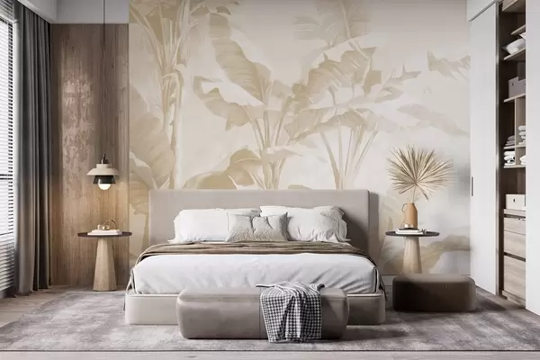 Fototapet Frunze de bananier tropical în nuanțe delicate de bej Nr. w09311v2