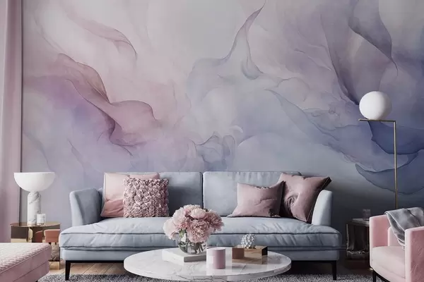 fototapet Pictură abstractă texturată cu nuanțe pastelate de roz, violet și albastru care creează un efect moale w09318