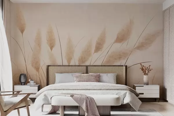 Fototapet Iarbă pampas moale, de culoare bej, în câmp Nr. w09324