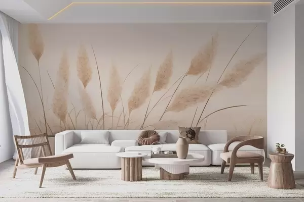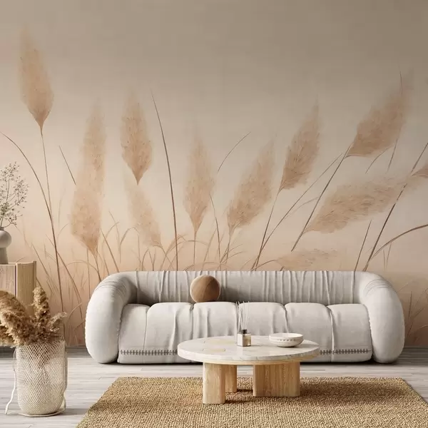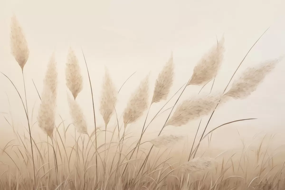 Fototapet Iarbă pampas moale, de culoare bej, în câmp Nr. w09324