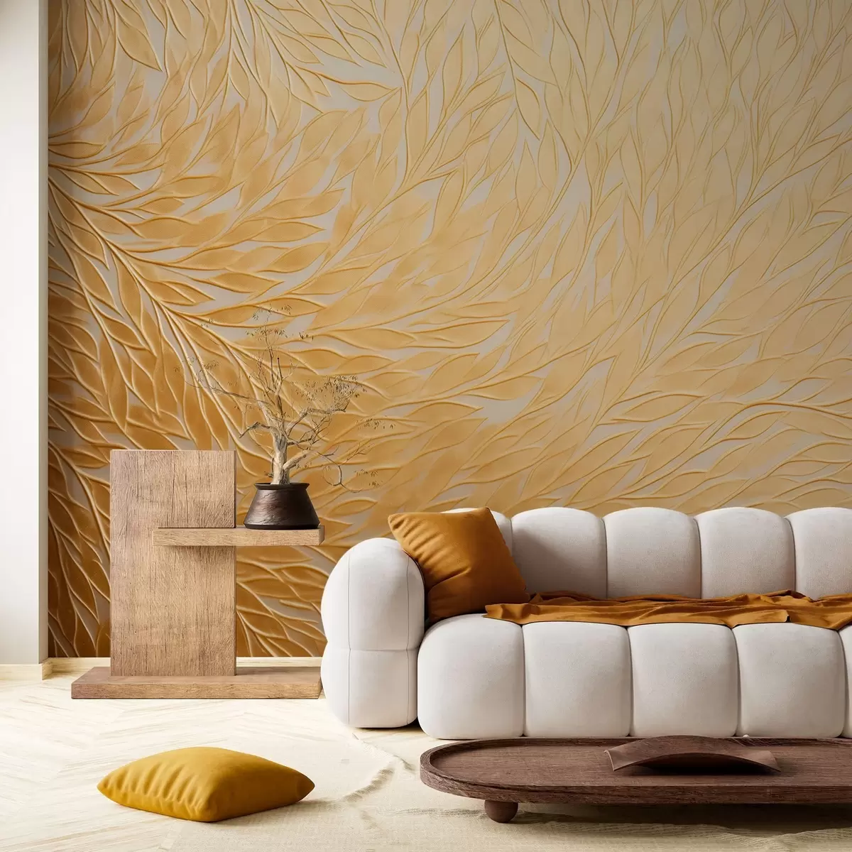 Fototapet Model de frunze în relief în tonuri calde de galben miere Nr. w09325