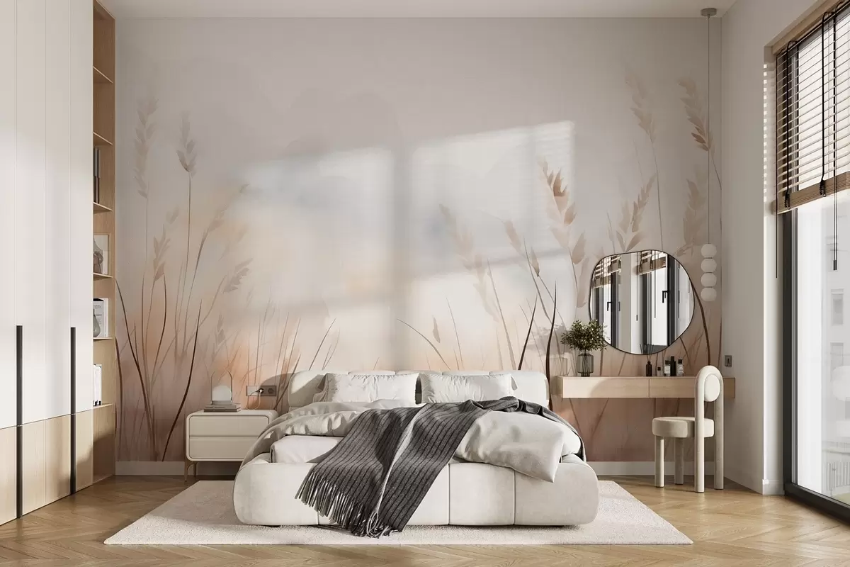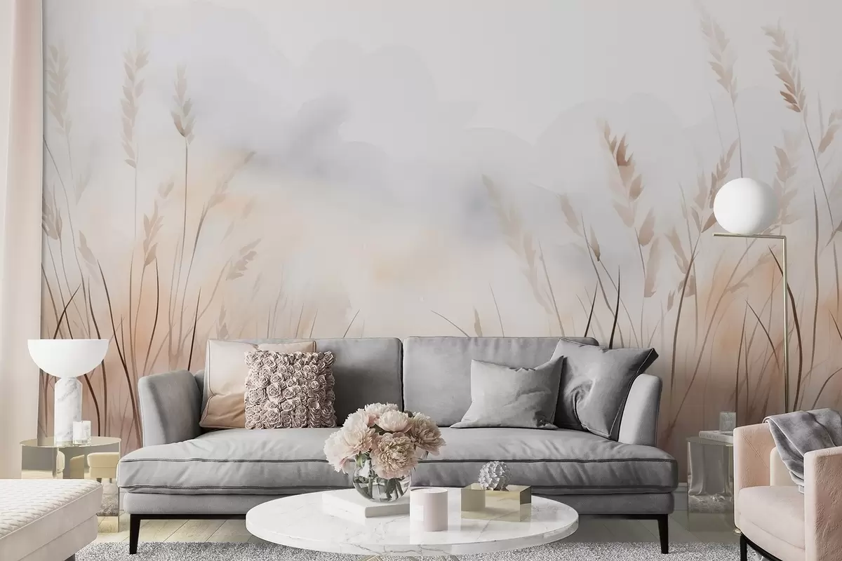 Fototapet Urechi de cereale în ceață în nuanțe moi de bej și maro Nr. w09327