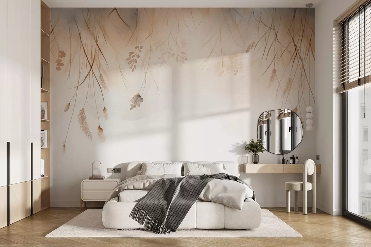 Fototapet Codițe și spice de cereale în ceață în nuanțe moi de bej și maro Nr. w09328