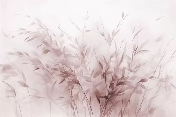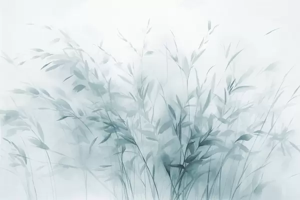 Fototapet Iarbă și buruieni cu frunze și tulpini subțiri, culori albastru deschis, tușe moi și delicate, print minimalist Nr. w09342v1