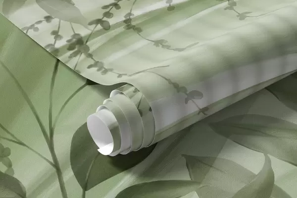Fototapet Palmier tropical frunze verzi cu un fundal cu dungi albe, iluminat moale, tușe delicate, forme organice Nr. w09343