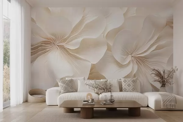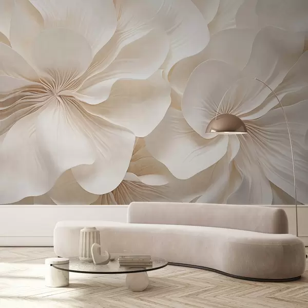 Fototapet Close-up de flori cu textură cremoasă, cu petale delicate, care curg, creând un aranjament floral moale, elegant și texturat Nr. w09346