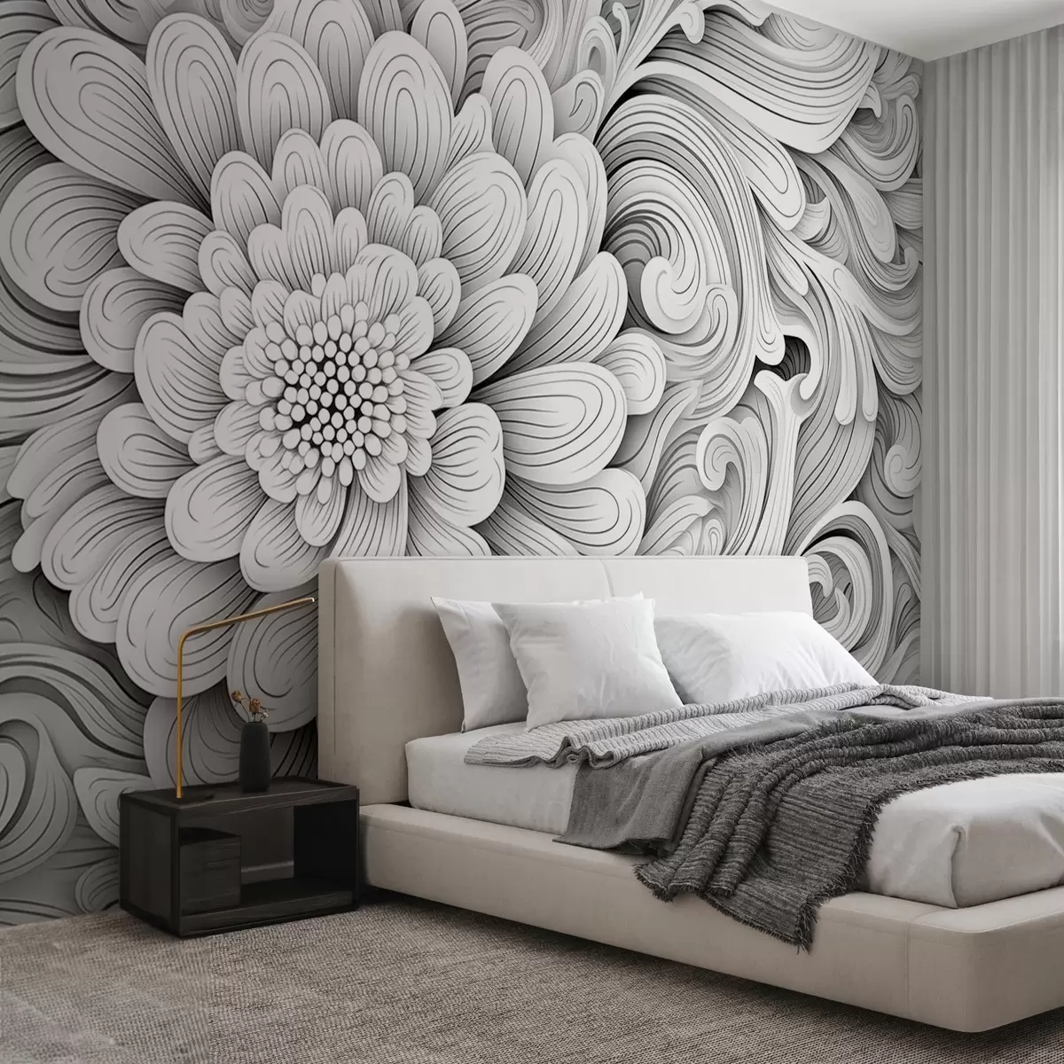 Fototapet Model decorativ alb-negru în formă de floare și vârtejuri Nr. w09355