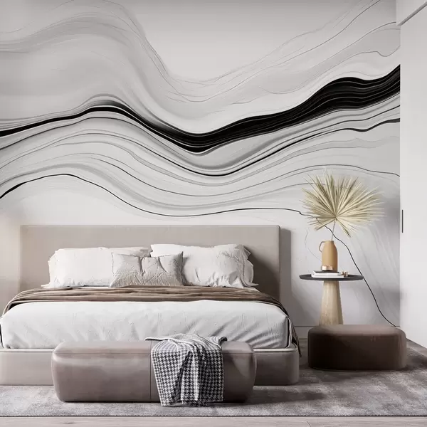 Fototapet Model alb-negru cu efect de straturi de marmură Nr. w09358