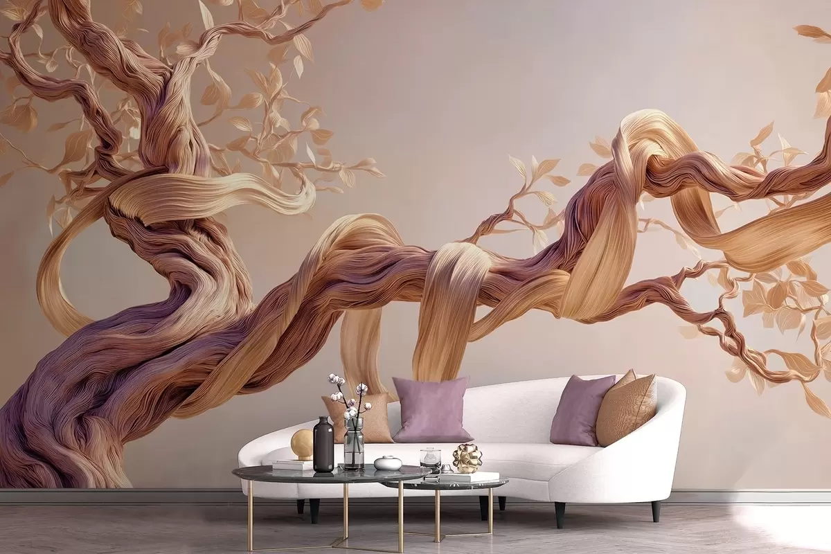 Fototapet Trunchi de copac răsucit cu frunze decorative Nr. w09360