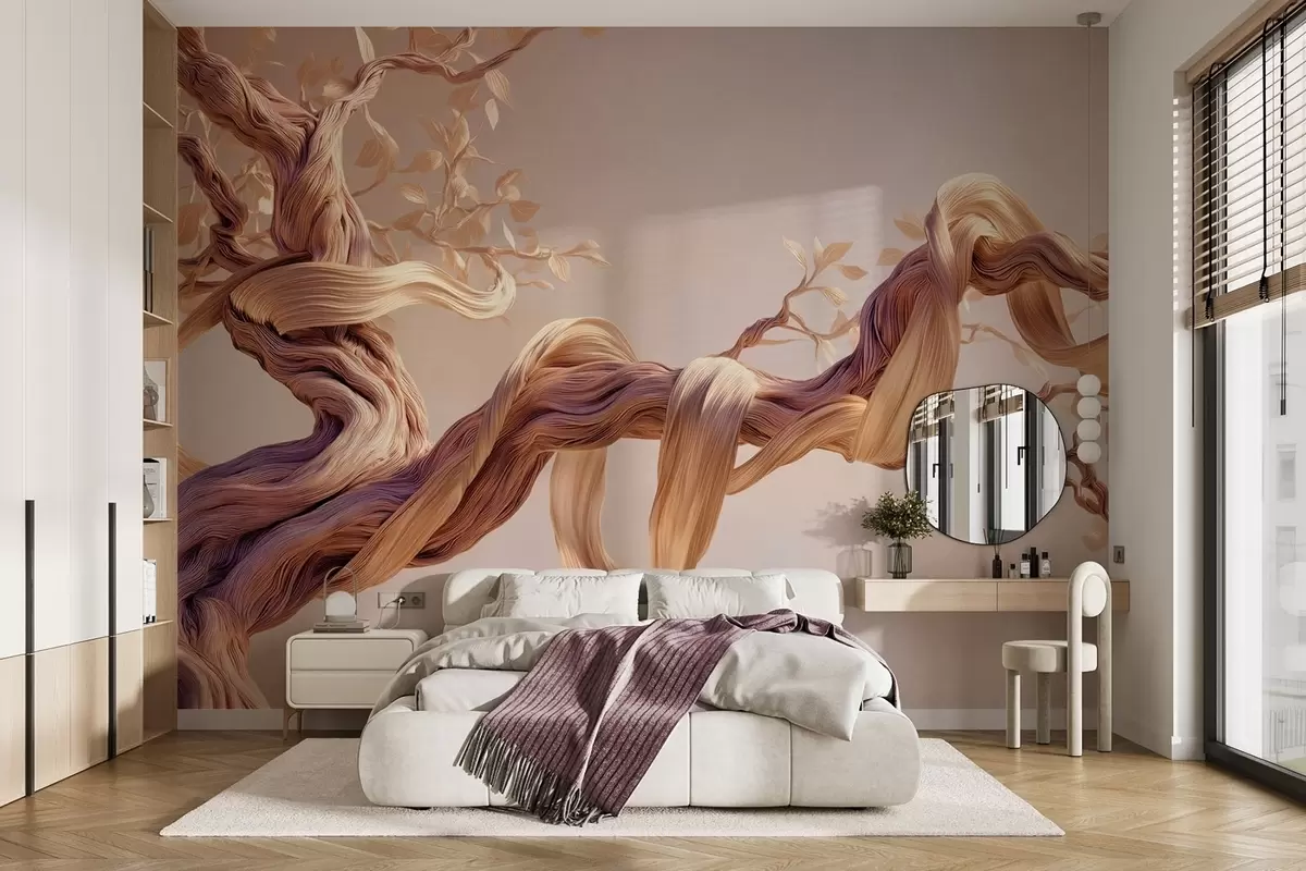 Fototapet Trunchi de copac răsucit cu frunze decorative Nr. w09360