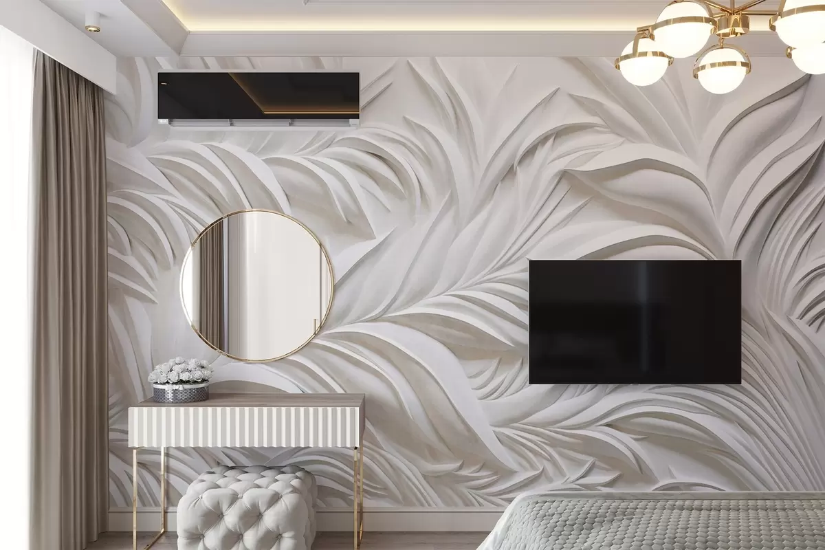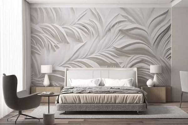 Fototapet Frunze albe abstracte texturate și elemente florale, estetică minimalistă Nr. w09378