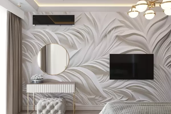 Fototapet Frunze albe abstracte texturate și elemente florale, estetică minimalistă Nr. w09378