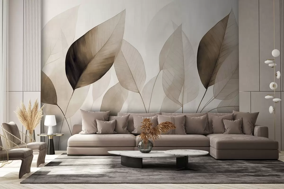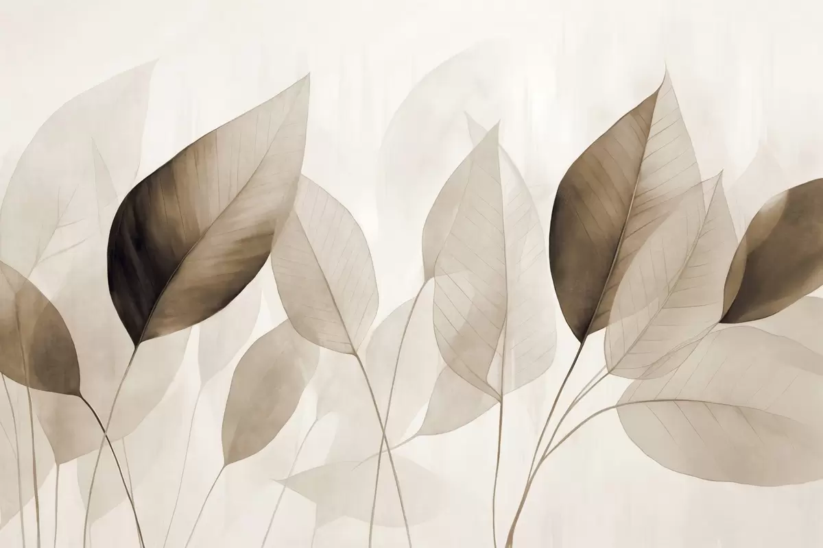 Fototapet Pictură texturată imitând frunze în nuanțe de maro și bej, cu nervuri și tulpini delicate Nr. w09400v1