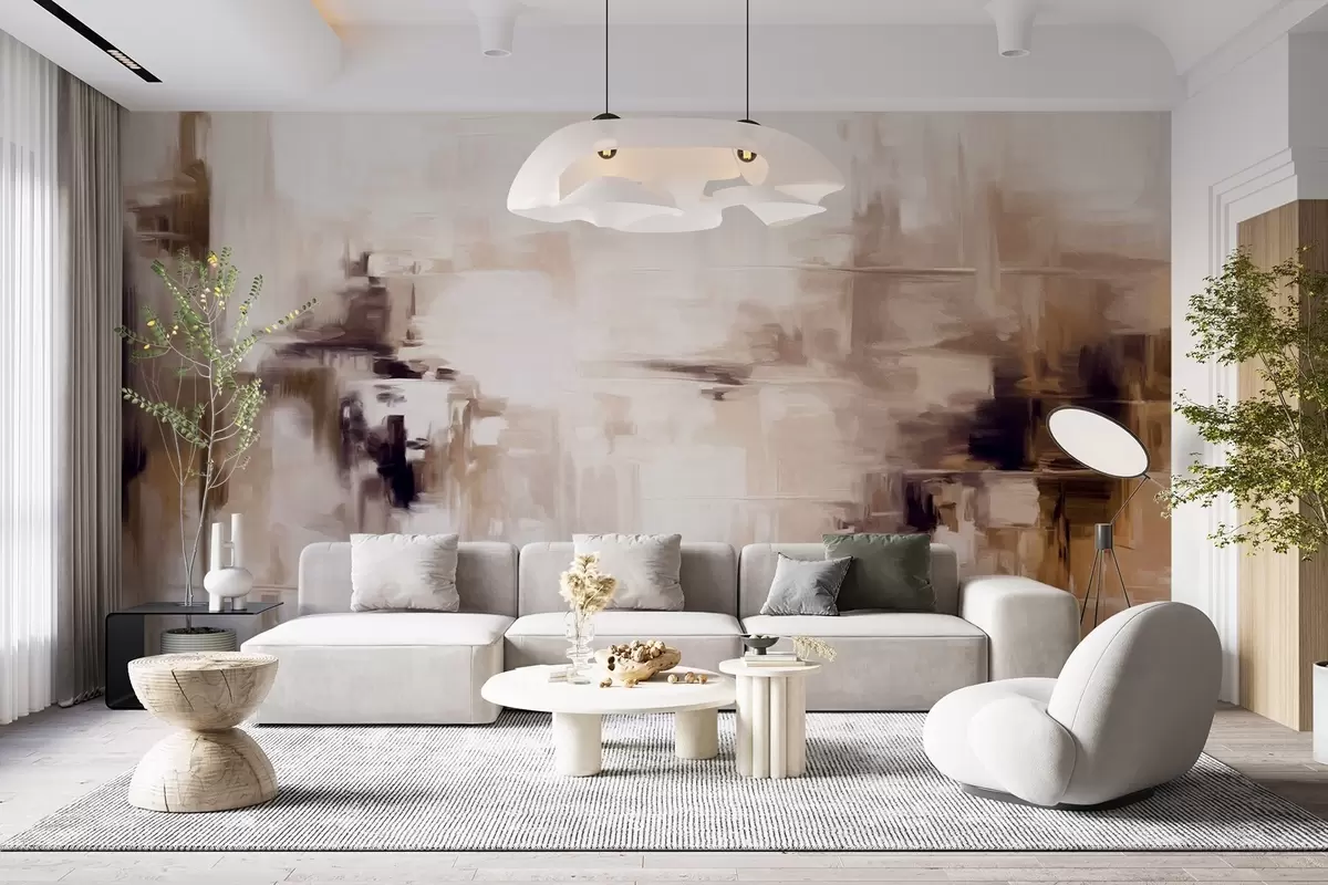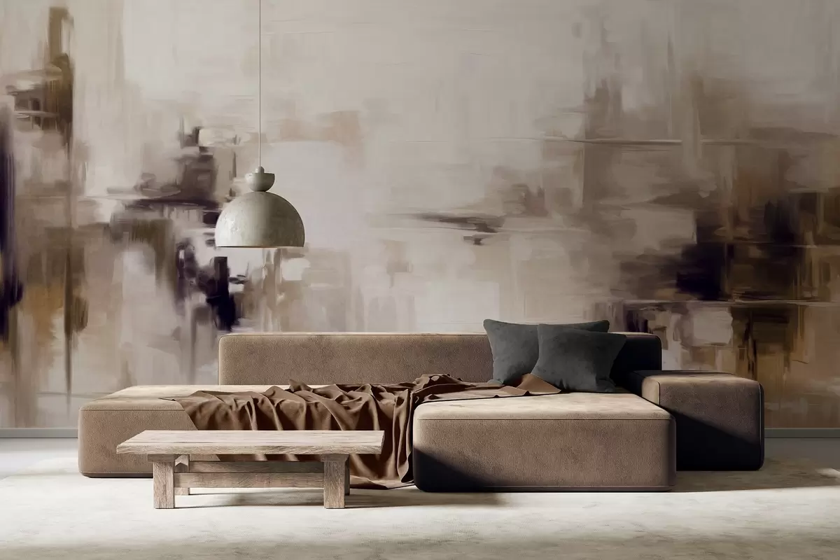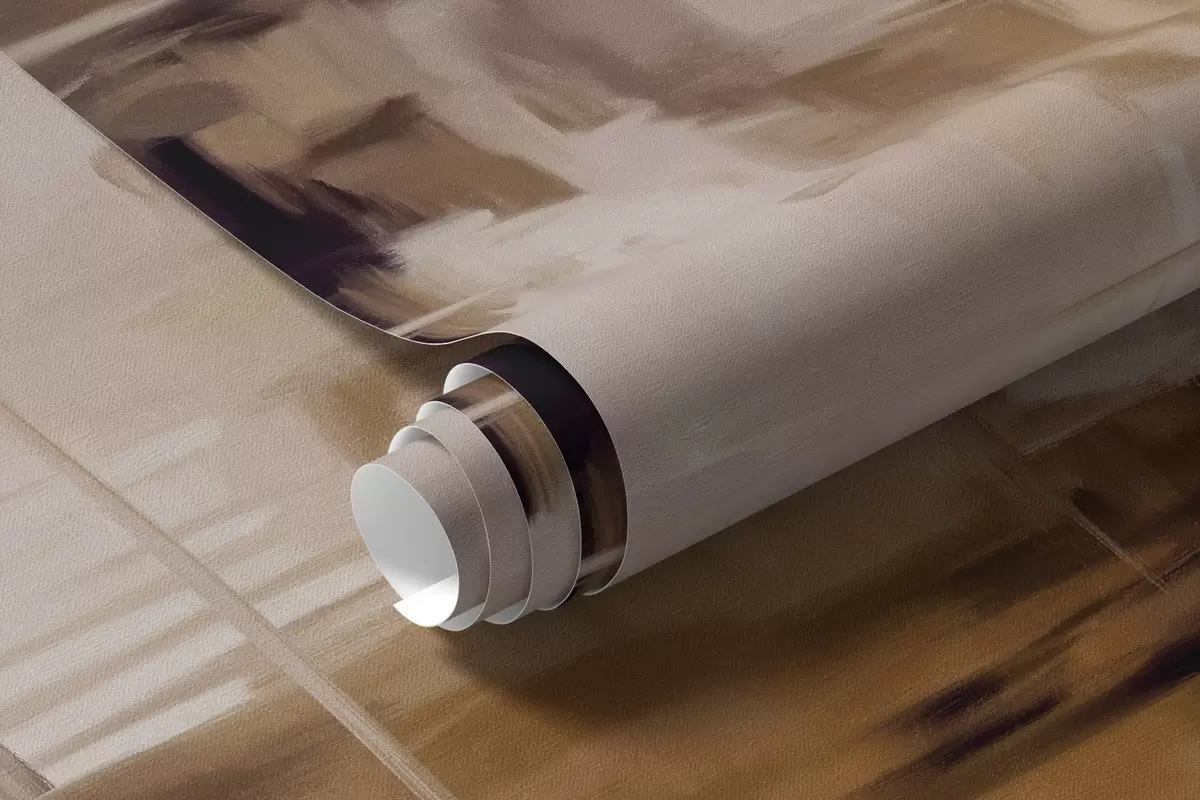 Fototapet Imitare de pictură abstractă cu textură peisagistică, cu pensule maro și albe, stil modern Nr. w09422v1