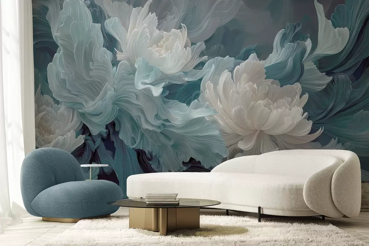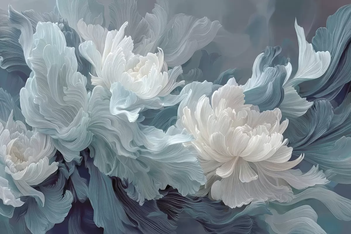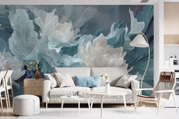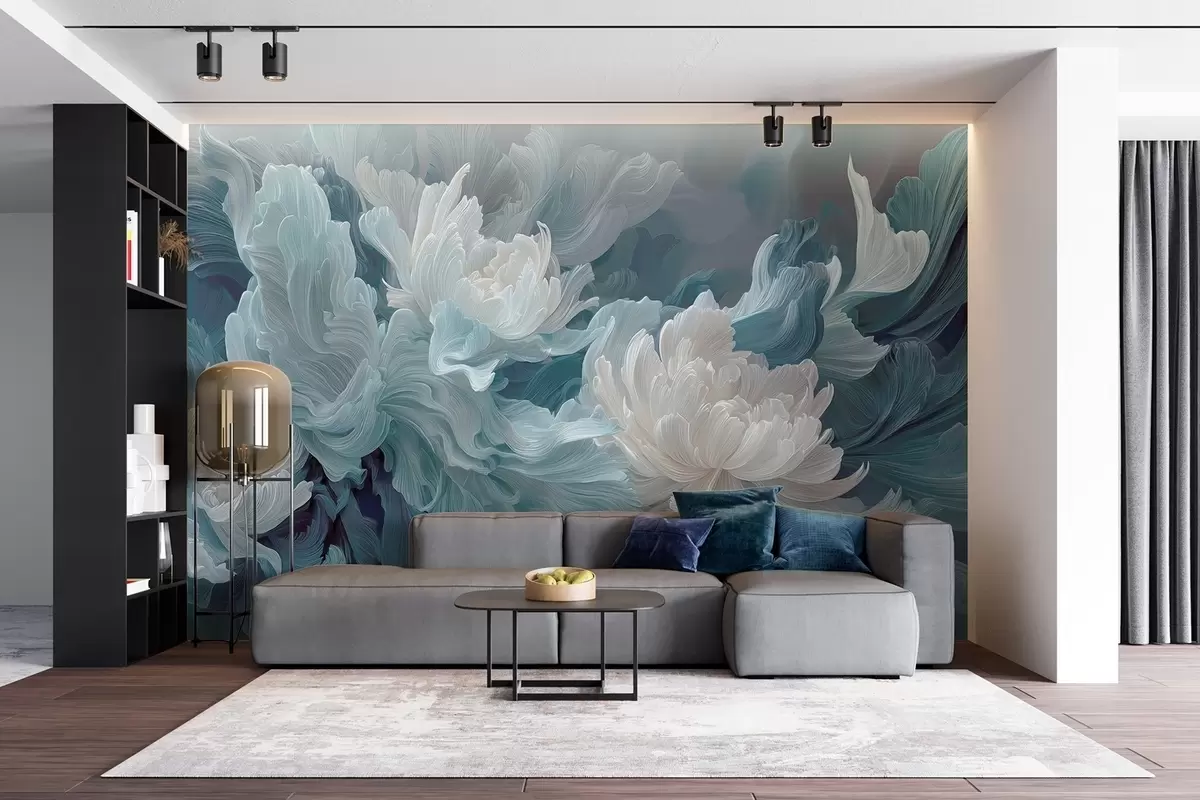 Fototapet Flori abstracte în nuanțe de albastru și turcoaz Nr. w09452