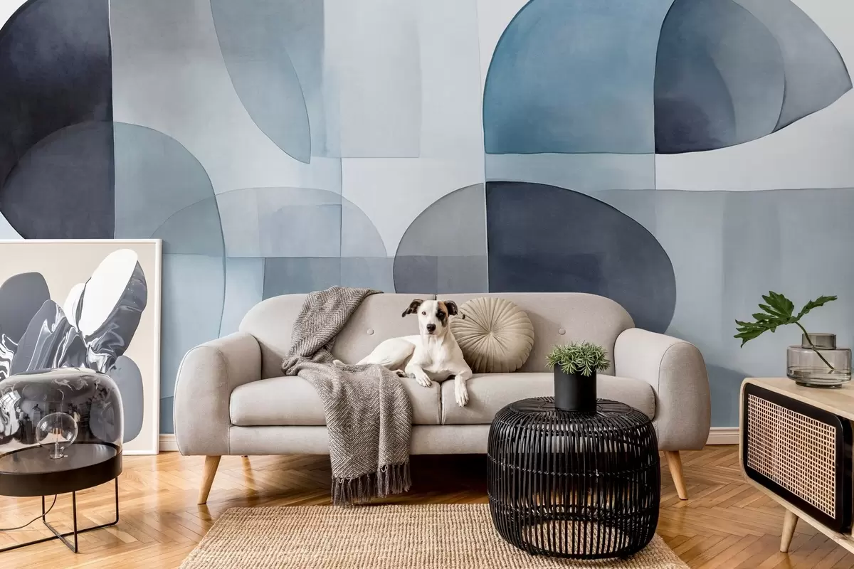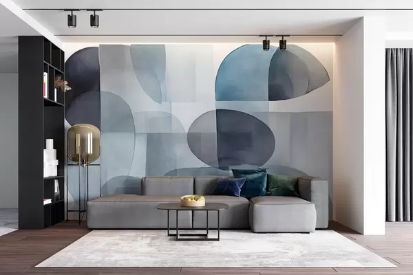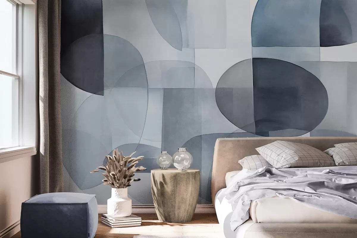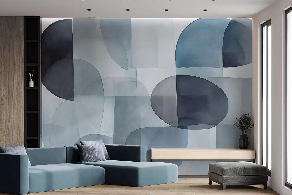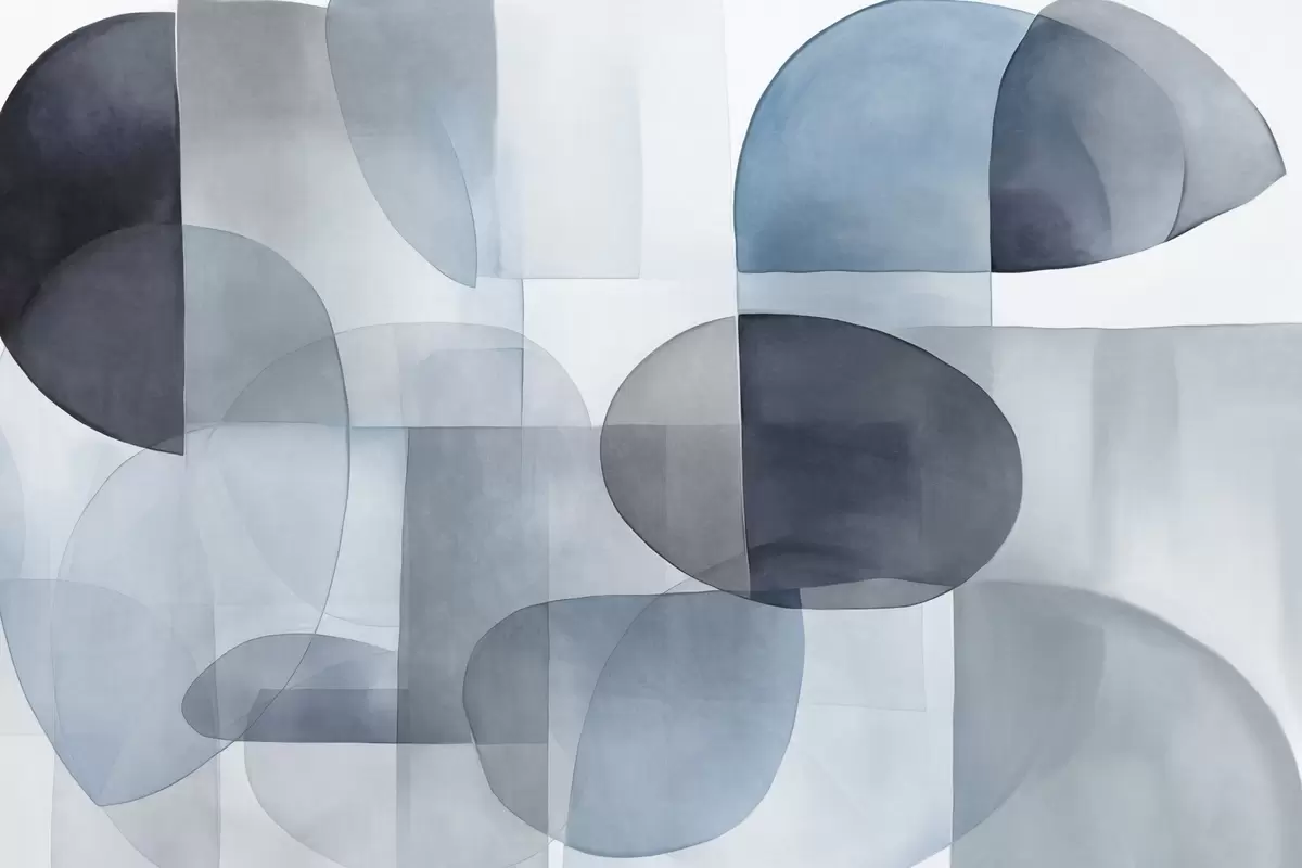 Fototapet Forme abstracte texturate în nuanțe de gri și albastru, tonuri discrete, compoziție minimalistă, fundal neutru Nr. w09467v1