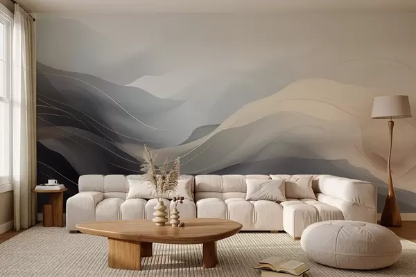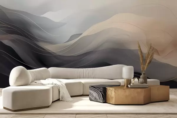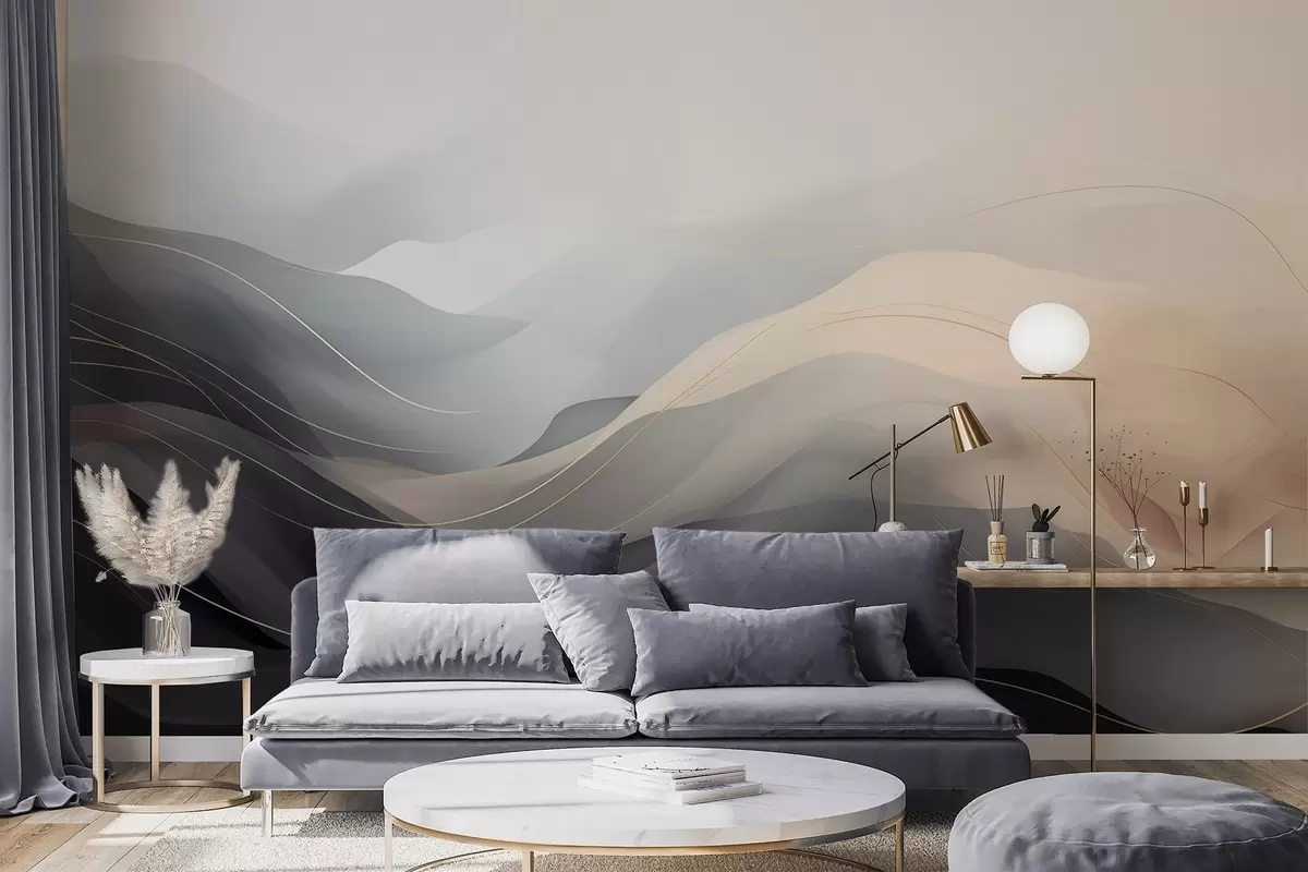 Fototapet Valuri abstracte, încețoșate, în tonuri de gri-crem, cu linii galbene Nr. w09504