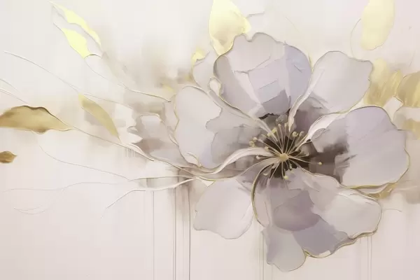 Fototapet Floare albastră cu accente galbene într-un stil abstract, realizată cu pensula Nr. w09505