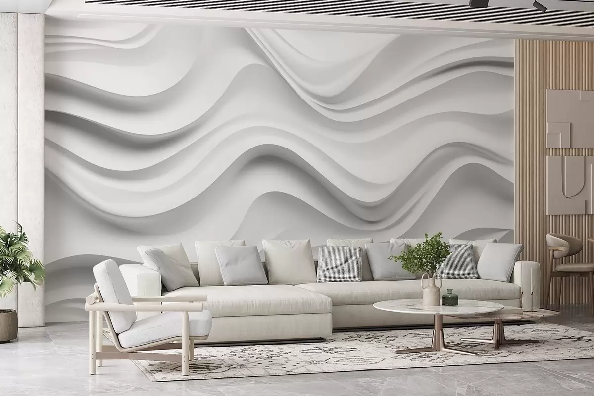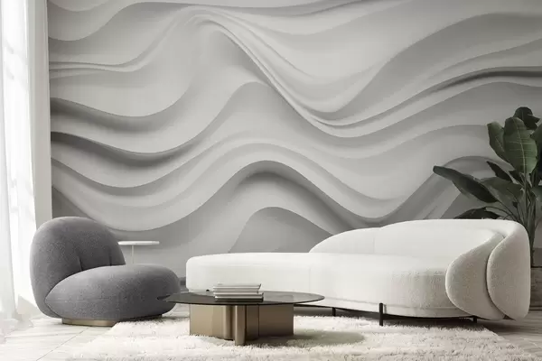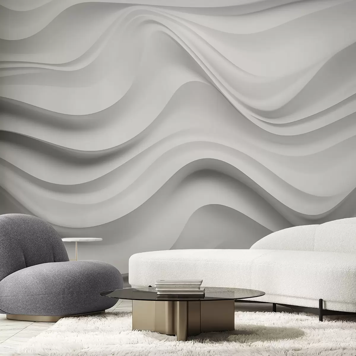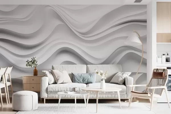 Fototapet Compoziție abstractă 3D alb-negru cu valuri line Nr. w09506
