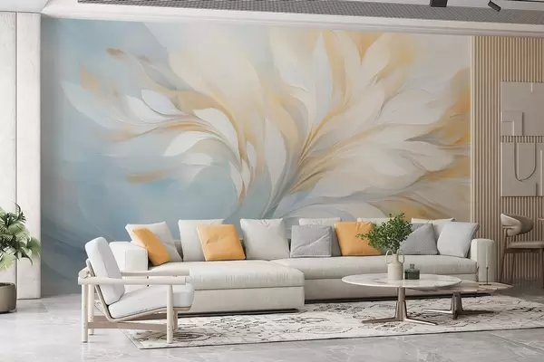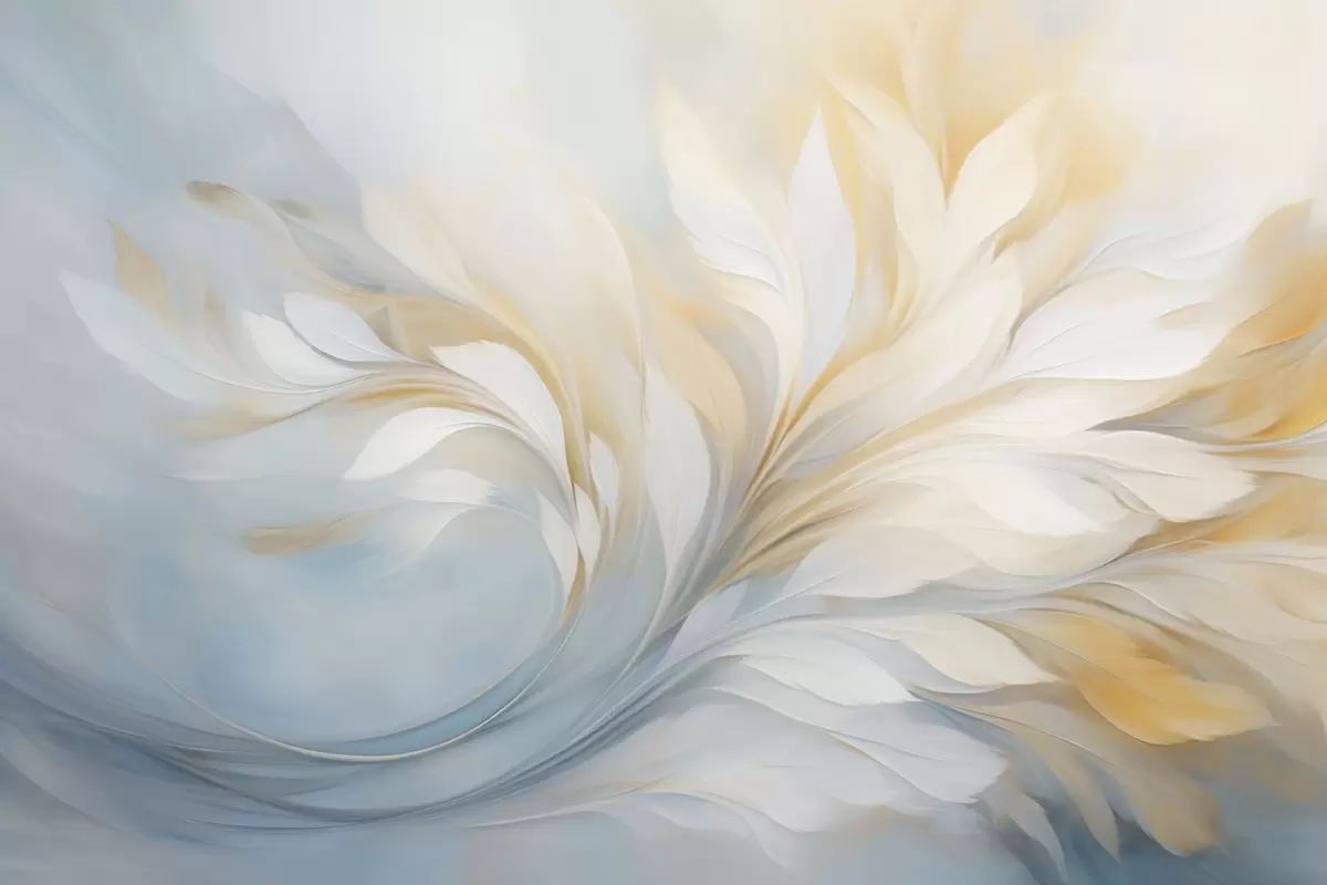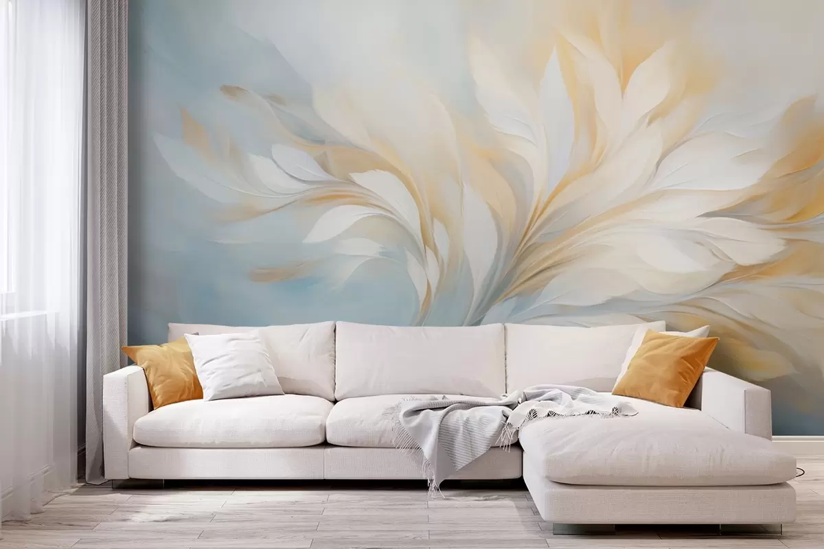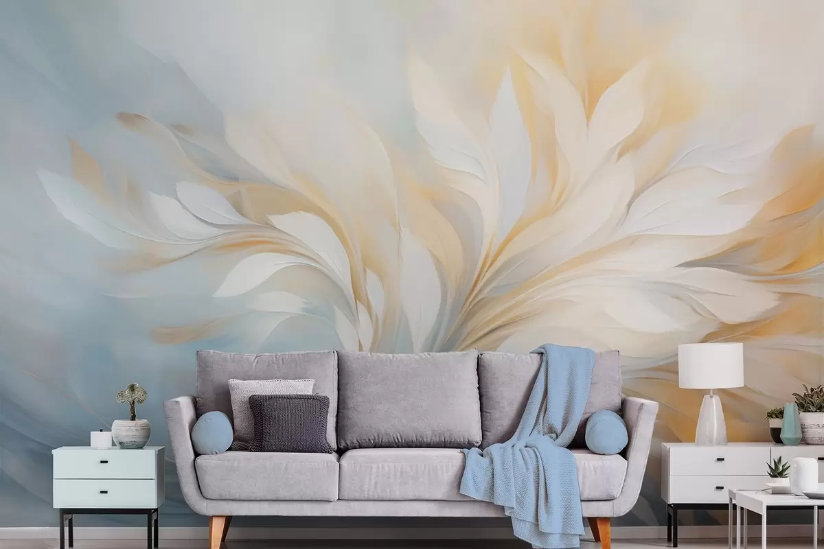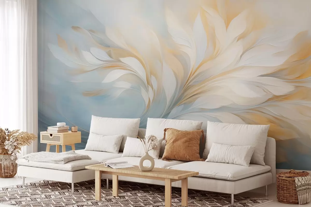 Fototapet Compoziție abstractă cu forme netede, asemănătoare penelor, în tonuri de galben și albastru Nr. w09525