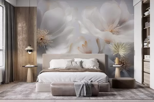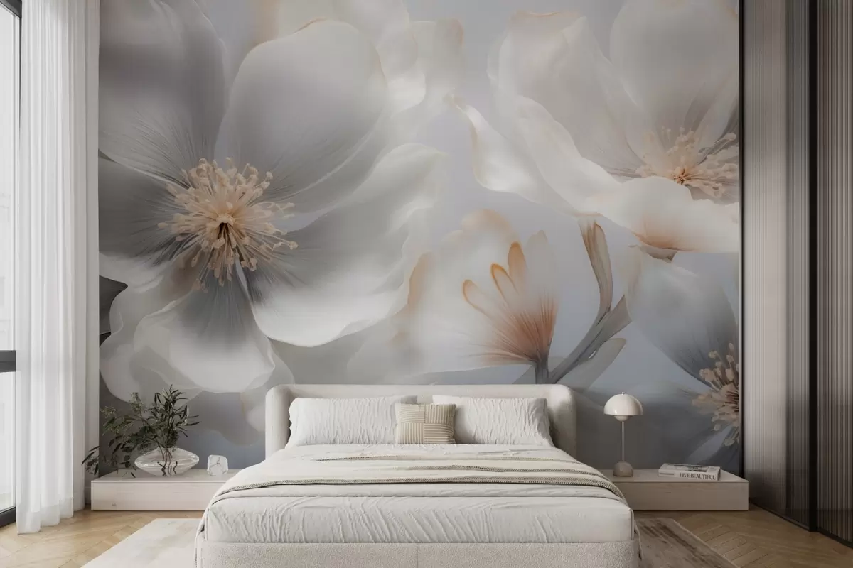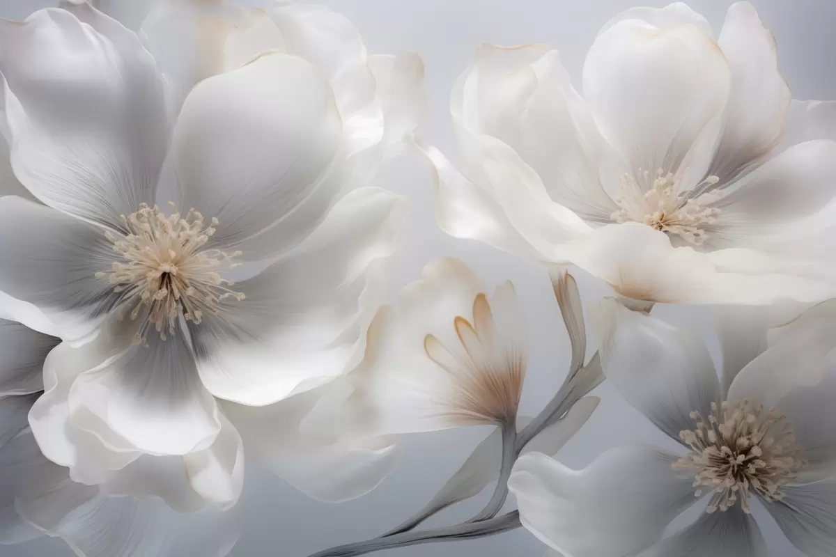 Fototapet Flori perlate în nuanțe de bej-gri și crem-lăptos Nr. w09527