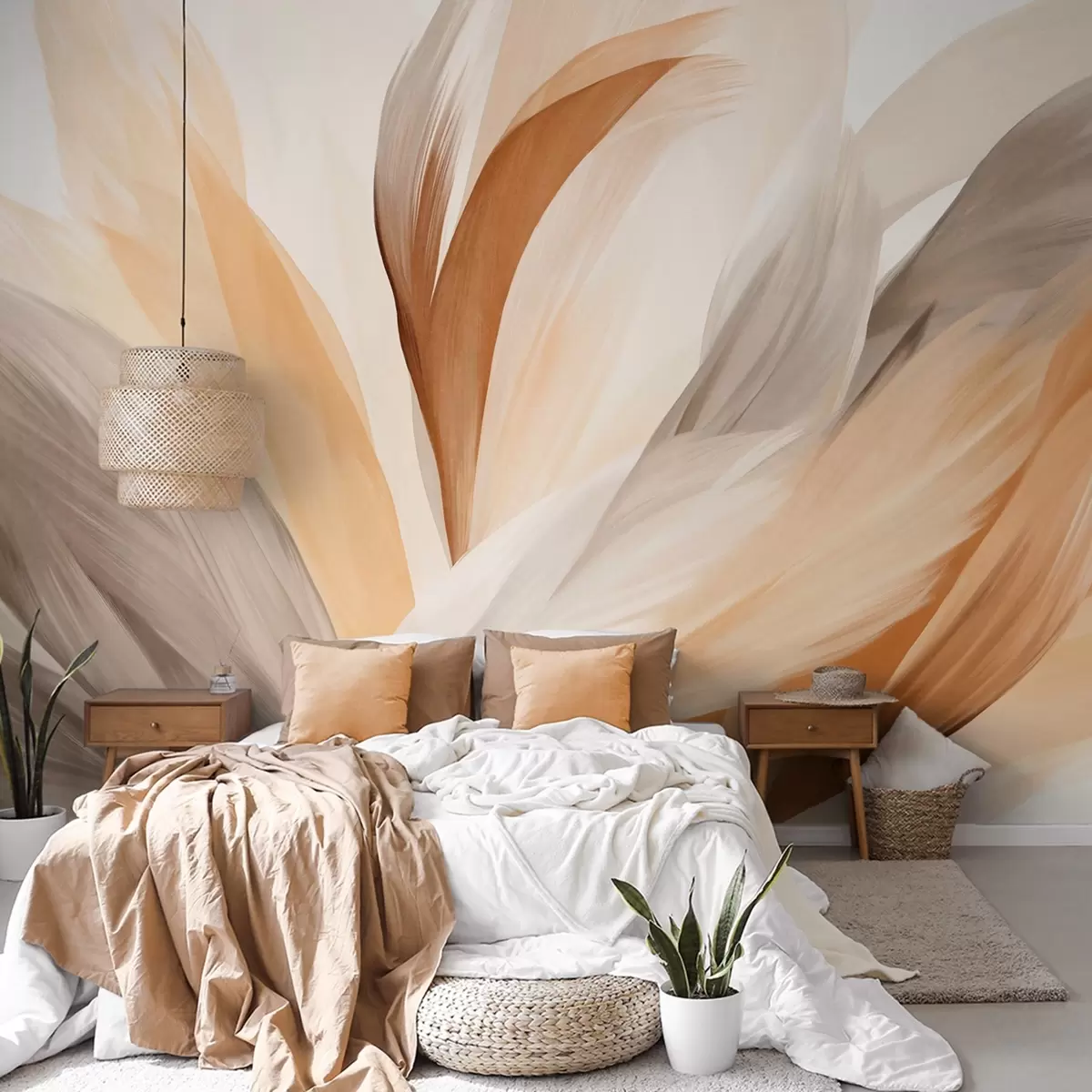Fototapet Pene abstracte texturate în maro, alb și gri și diverse nuanțe, suprapuse pe un fundal alb Nr. w09531