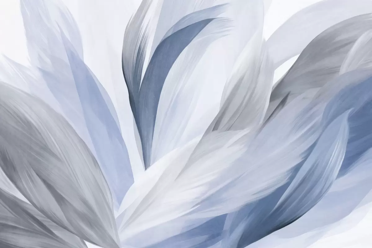 Fototapet Pene abstracte texturate în albastru, alb și gri și diverse nuanțe, suprapuse pe un fundal alb Nr. w09531v1