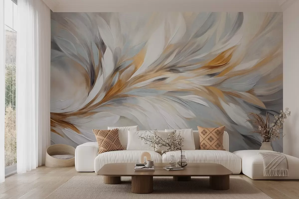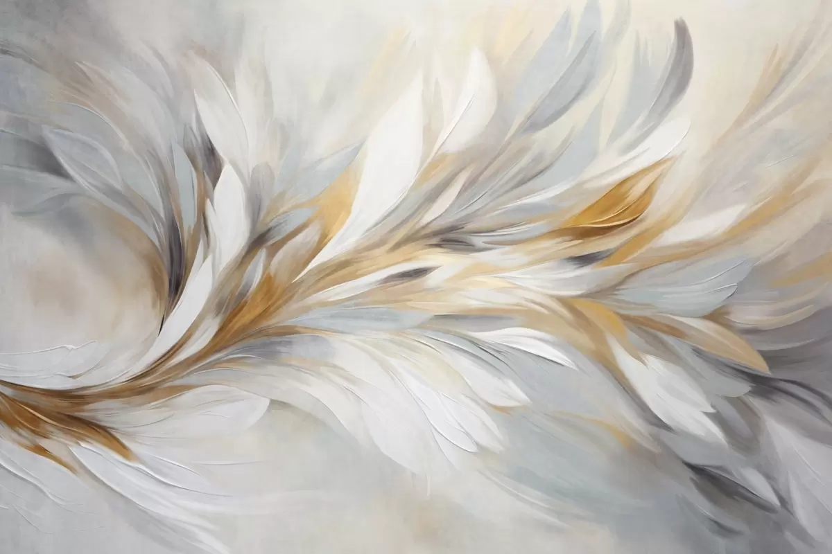 Fototapet Stil de pictură abstractă cu pensule texturate în alb, galben și gri, pe un fundal moale și deschis. Nr. w09552