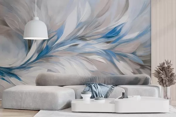 Fototapet Stil de pictură abstractă cu pensule texturate în alb, albastru și gri, pe un fundal moale și deschis. Nr. w09552v1