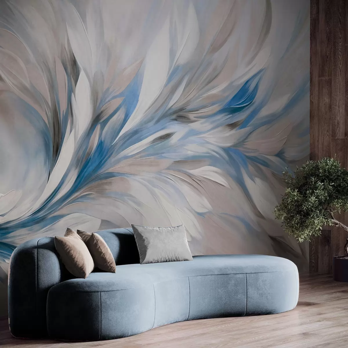 fototapet Stil de pictură abstractă cu pensule texturate în alb, albastru și gri, pe un fundal moale și deschis. w09552v1