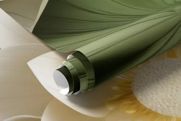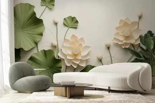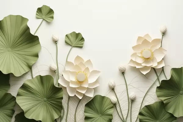 Fototapet Flori de lotus 3D cu frunze verzi texturate, stil minimalist Nr. w09560