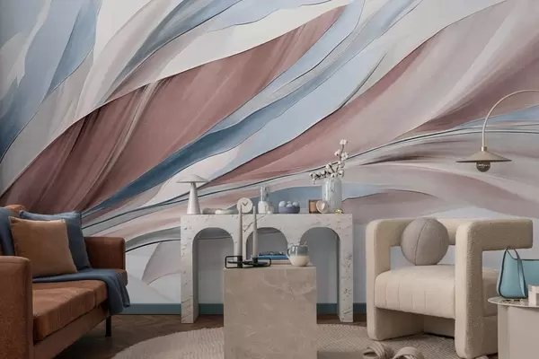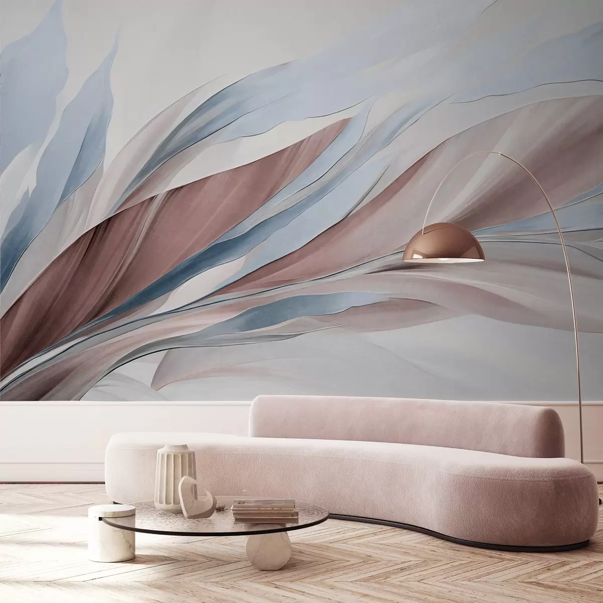 Fototapet Valuri abstracte albastre și maro, cu forme și linii subțiri, pe un fundal alb, artă texturată Nr. w09585v1