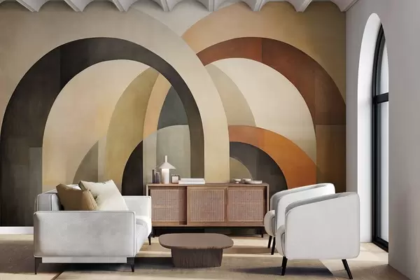 Fototapet Arce geometrice abstracte texturate în tonuri pământii de bej, maro și gri, un design arhitectural modern stratificat Nr. w09611