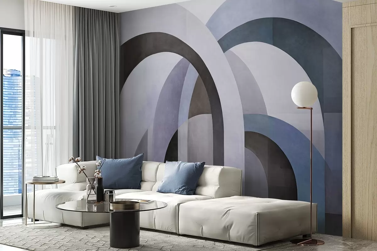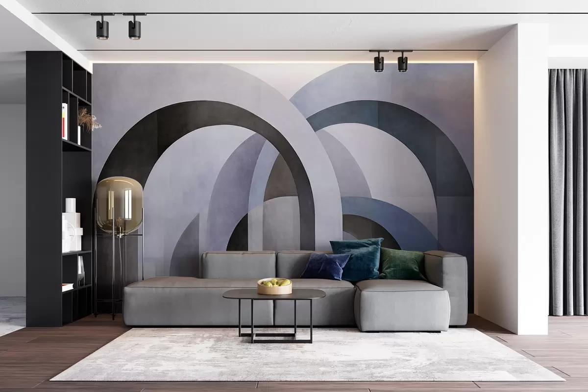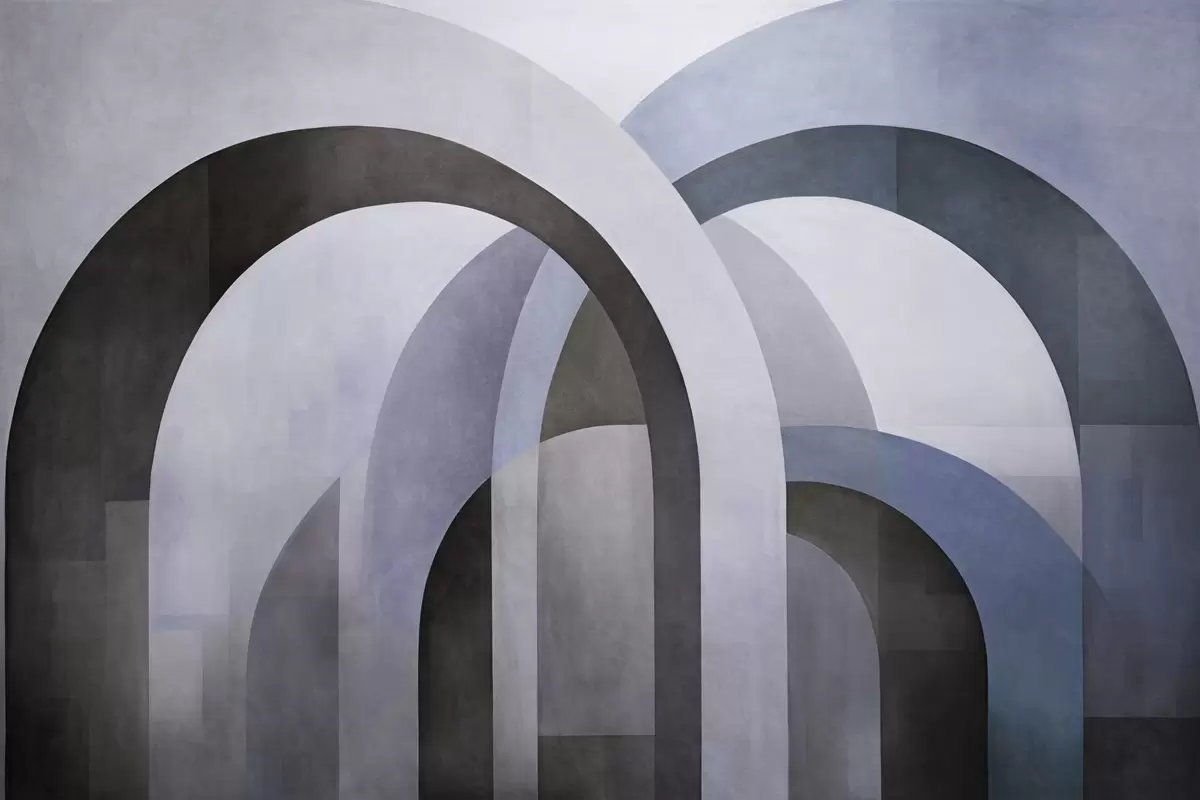 Fototapet Arce geometrice abstracte texturate în nuanțe de albastru, negru și gri, un design arhitectural modern stratificat Nr. w09611v1