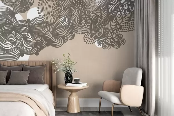 Fototapet Design abstract texturat pe fond bej, cu linii complexe și texturi punctate Nr. w09621